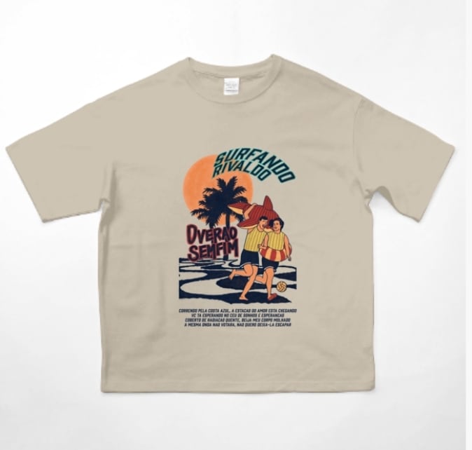 波乗りをしに行こうと、何故かシャチの浮き輪を担ぐリバウドと浮き輪をつけるロナウジーニョがブラジルのビーチに駆け出す様子をデザインした一枚です