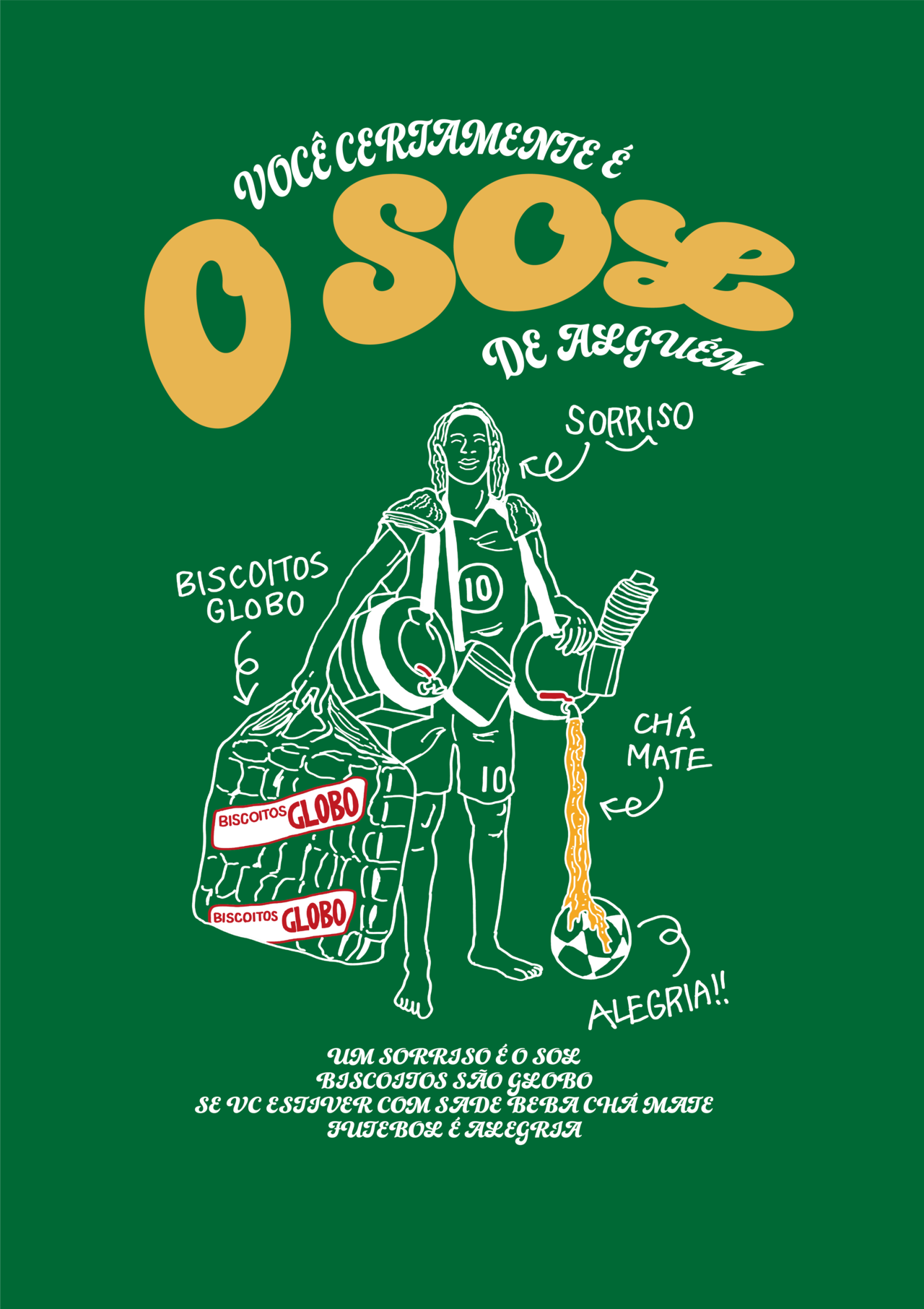 マテ茶売りに扮したロナウジーニョが笑顔を売りに商売をするイラストをプリントした一枚